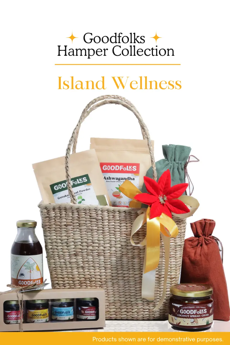 All Goodfolks Natural Sri Lanka Hampers are 100% local, minimally processed, and eco-packaged. Add festive Christmas decor or corporate branding—or keep it rustic.