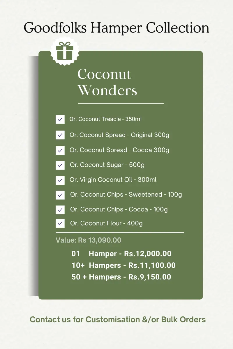 | Coconut Wonders | 10,500 | Virgin Coconut Oil, Treacle, Coconut Sugar, Spreads | Plant-based, gluten-free | Tropical indulgence |